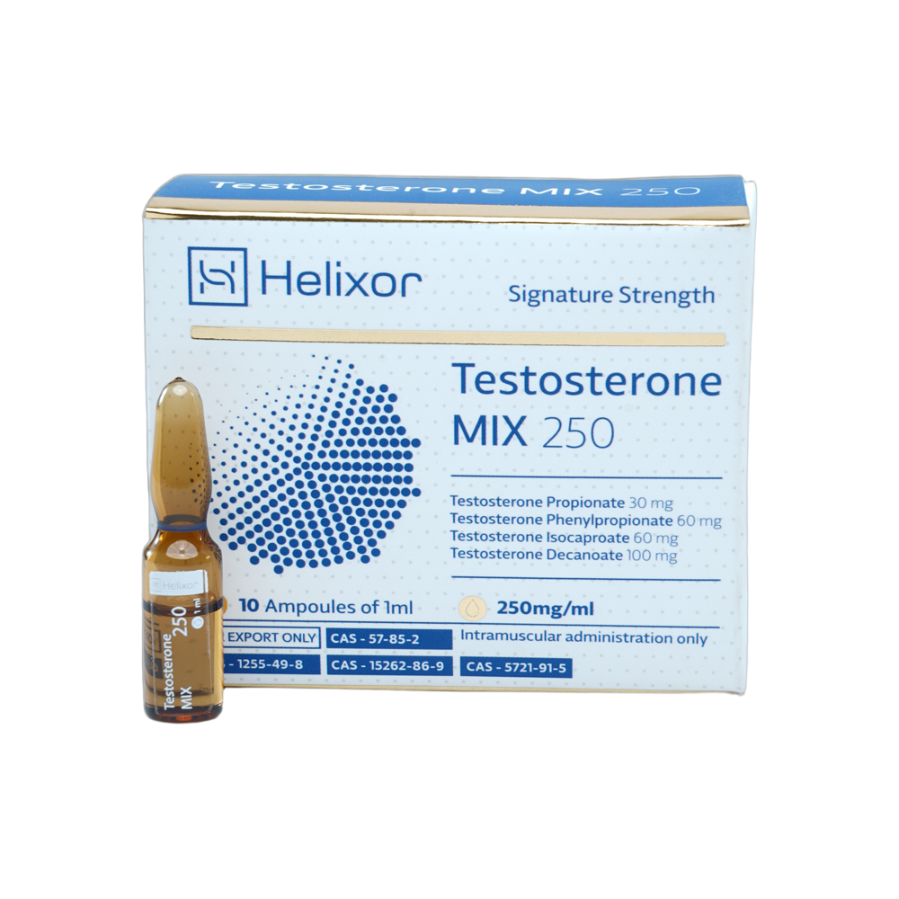 Testosterone MIX 250 es un complejo de liberación secuencial diseñado para garantizar un entorno anabólico constante y maximizar la hipertrofia muscular. Gracias a la sinergia de sus cuatro ésteres, ofrece un inicio de acción rápido junto con un efecto prolongado, manteniendo la fuerza física y el rendimiento en niveles máximos sin fluctuaciones. Su perfil farmacológico asegura una retención de nitrógeno superior, facilitando una construcción muscular sólida y duradera. Testosterone MIX 250 optimiza la recuperación sistémica de las fibras, siendo la base estructural para atletas que buscan volumen, potencia y estabilidad fisiológica.